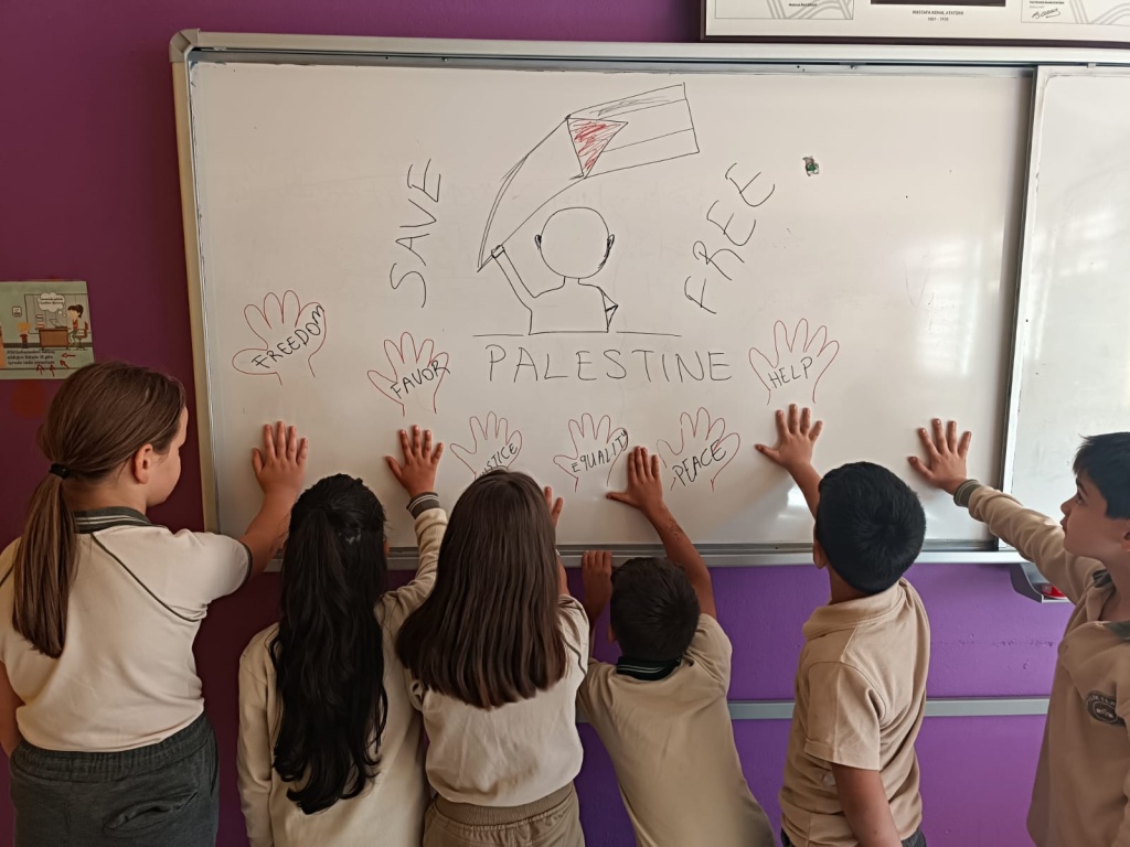 07.10.2025 Salı günü Milli Eğitim Bakanımız Sayın Yusuf TEKİN'in talimatı ile tüm öğrenci, öğretmen, idareci ve okul personelimizin katılımıyla okul içinde gerçekleştirdiğimiz " Özgür Filistin " sloganıyla zulme uğrayan din kardeşlerimiz için bir araya gelip sesimizi duyurmaya çalıştık. Slogan, afiş, yürüyüş ve sonrasında dualarla bitirdiğimiz etkinliğimizde öğrencilerimizin duyarlılığı bizleri duygulandırdı. Çiftlik İlkokulu ailesi olarak İsrail in tüm dünyanın gözleri önünde uyguladığı bu zulmün bir an önce bitmesini diliyoruz.
